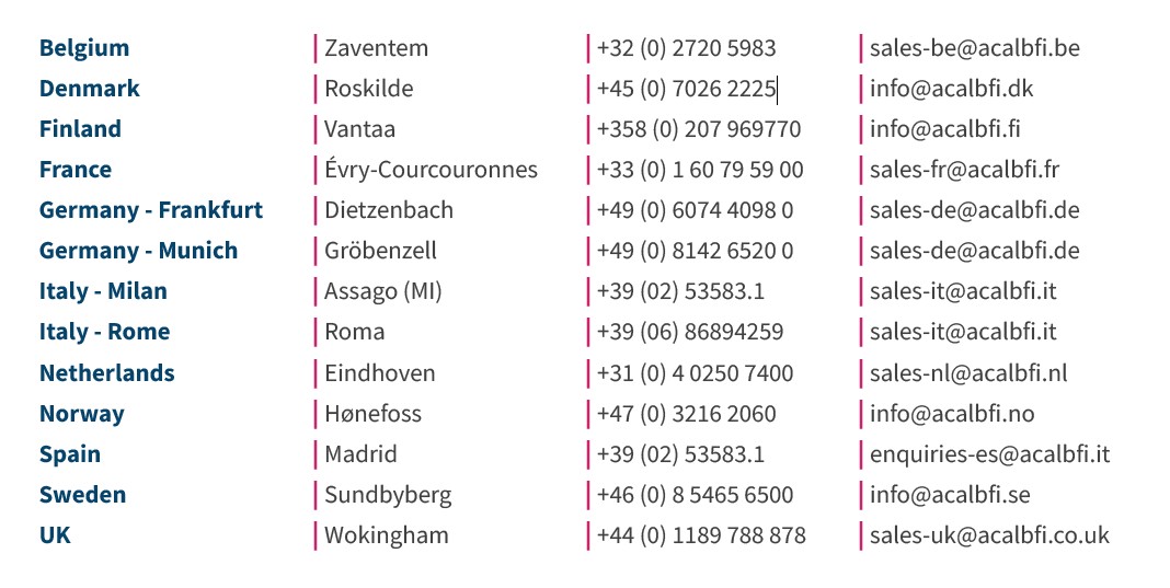 For inquires, please contact the below Acal BFi regional offices: