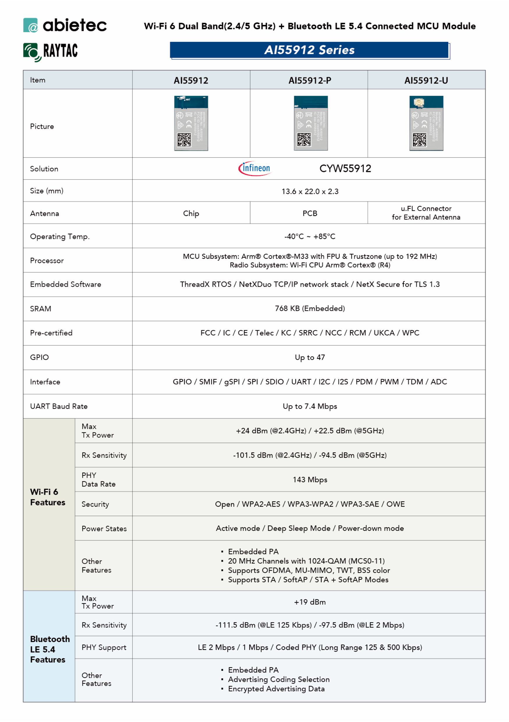 * Infineon CYW55912 SoC Solution